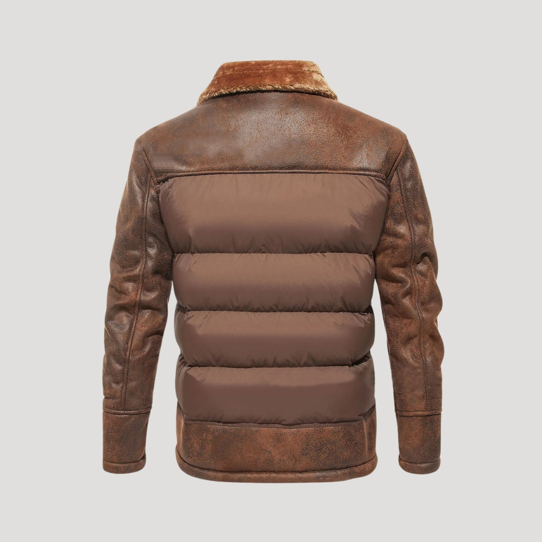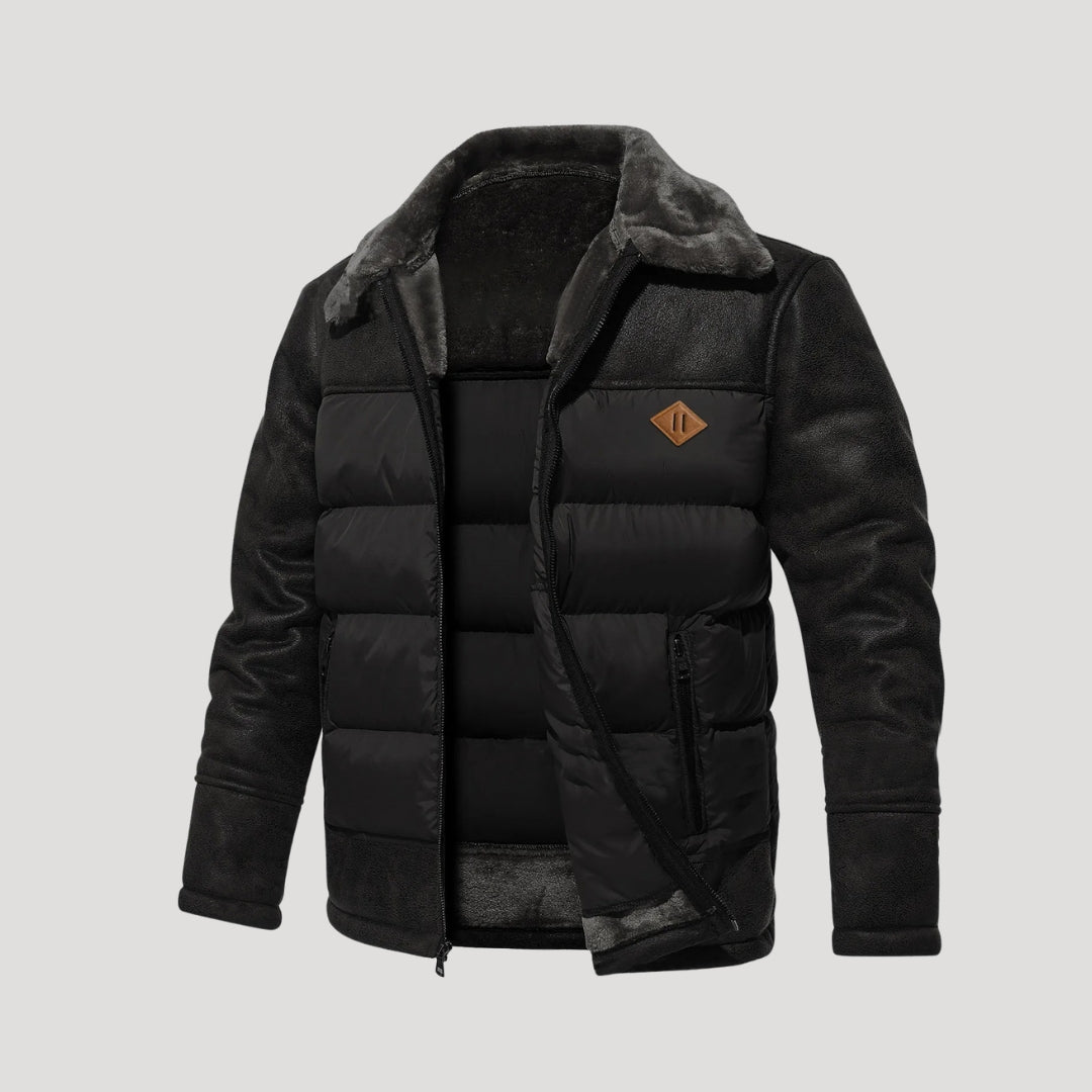 Gefütterte Herren-Winterjacke mit Fleece-Futter | Warme Jacke mit Kunstleder-Details