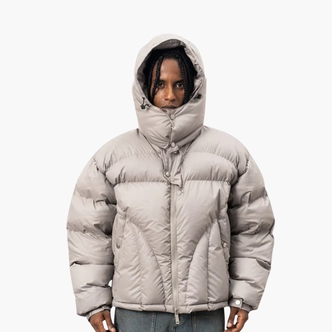 • Kragen und Kapuze: Hoher Kragen mit gesteppter Kapuze.