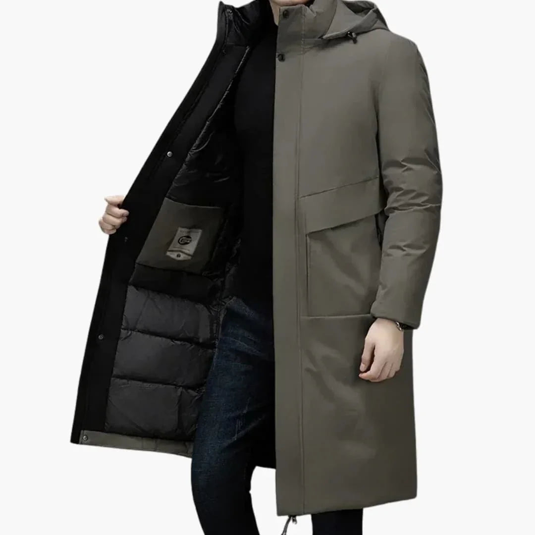 Mantel Herren Langer Winter | Kapuze Reißverschluss Steppfutter